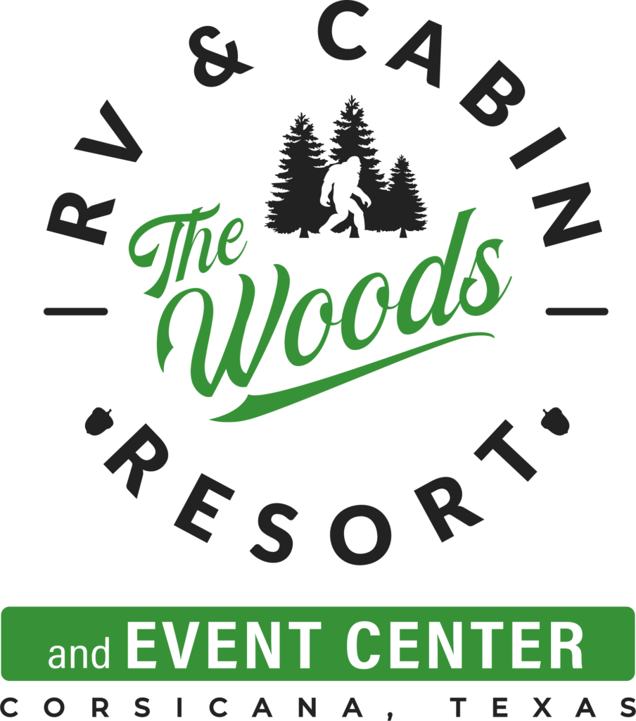 Website refers to The Woods RV and Cabin Resort, accessible from https://thewoodsrvandcabinresort.com/